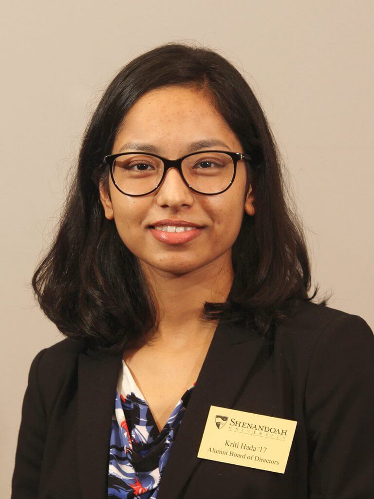 Patient advocate, caregiver, and educator, Kriti Hada (N ’17), owes her success as a registered nurse to Shenandoah University’s generosity: “Shenandoah gave me the gift of education. Today, I have a stable job where I work happily. As SU spread out their hands to me when I was in need, I feel honored to be a small help towards SU to achieve its goals.”