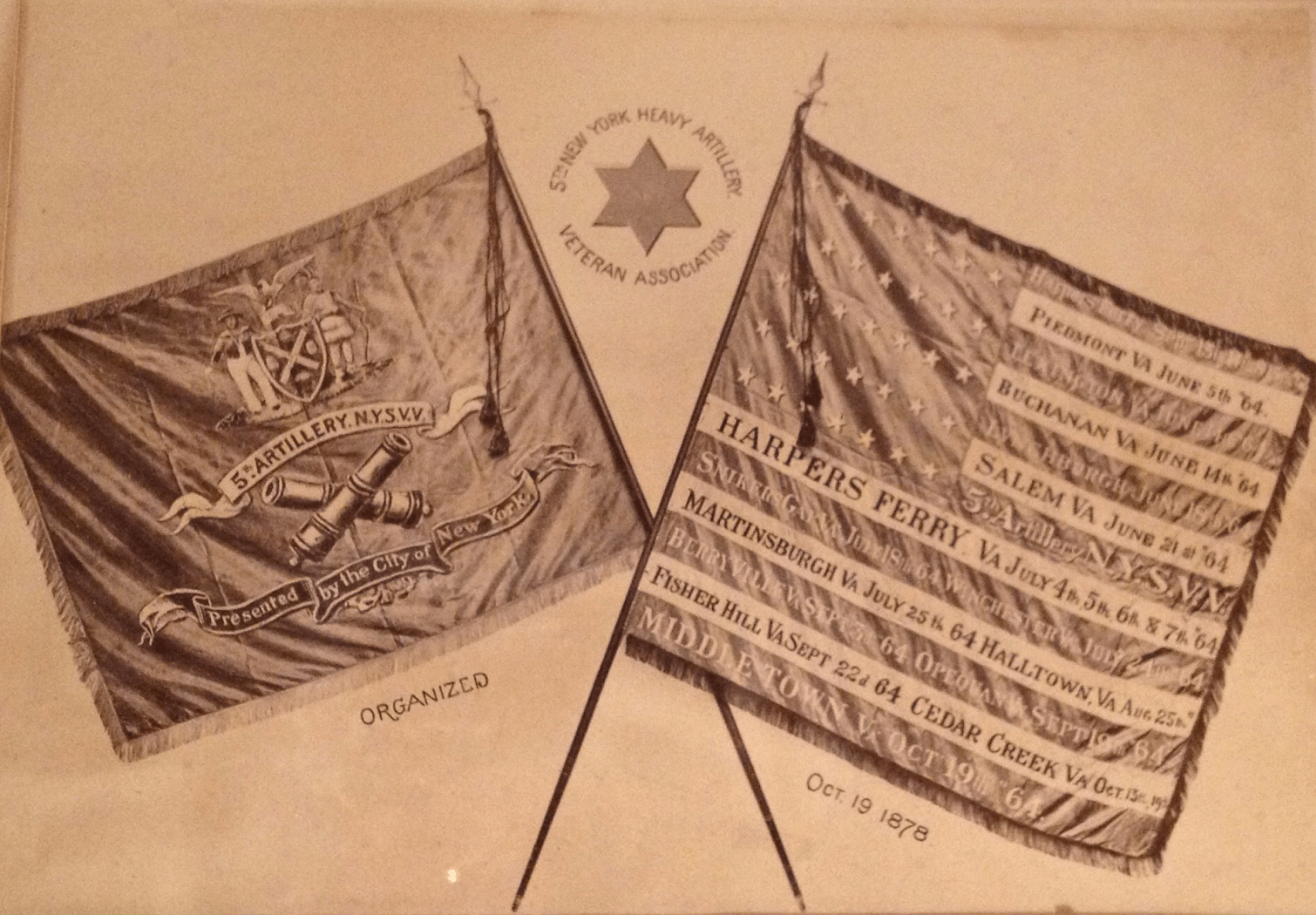 Among the units engaged at the Battle of Cool Spring were elements of the 5th New York Heavy Artillery. In the war’s aftermath veterans from the regiment sold photographs like the one you see above to raise money for the 5th New York Heavy Artillery Veteran Association. The unit’s national colors proudly displayed its battle honors. Note on the far left side of the fifth stripe from the bottom the battle honor “Snikers Gap VA, July 18th 64.” Union regiments oftentimes referred to the Battle of Cool Spring as the Battle of Snickers Gap.