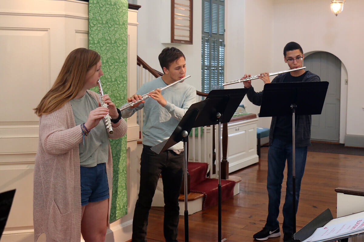 Professor of Flute Jonathan Snowden, A.G.S.M., hosted the 2018 National Flute Workshop with Rebecca Carey, professor of flute at Levine School of Music. The event was held from July 16, through July 20, at the Old Presbyterian Meeting House in Alexandria, Virginia. Participants from around the region and beyond, including South Carolina and Pennsylvania, participated in private lessons, masterclasses, technique classes, daily coached chamber ensembles, theory and ear training classes, recitals, a student solo night and multiple concerts. Learn more at jonathansnowden.com/flute-workshop.