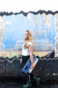 On Aug. 17, Natalie Ahearn (C ’18) and the funk/fusion band, “Of Tomorrow” performed at the Bright Box Theater in Winchester, Virginia. (Pictured to the right.)