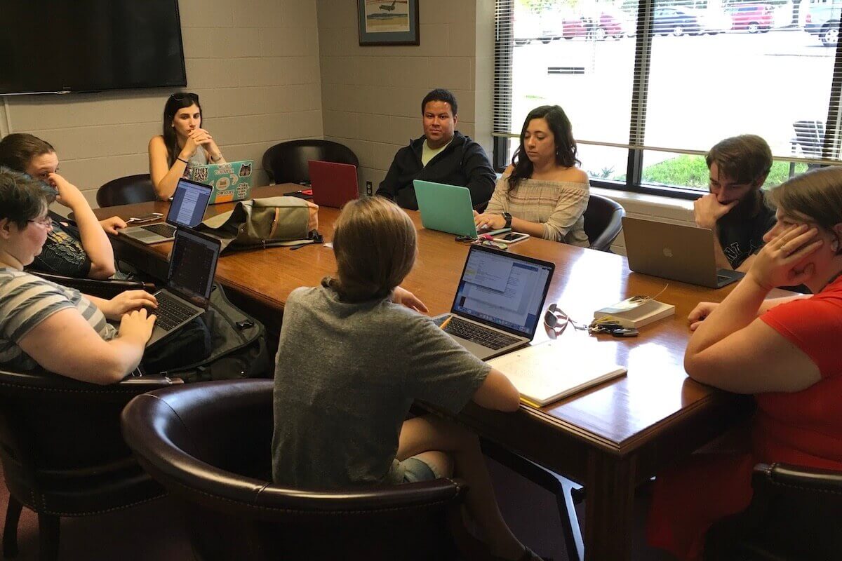 Featured photo caption: The Avalon team, shown at a recent meeting held in Henkel Hall. These meetings occur at 3 p.m. every Wednesday. Pictured are: (at the back end of table working to the right) Heather Knapp, Antoni Blanco, Amber Muse, Sawyer Kling, Dr. Sarah Canfield, Lauren Baker, Brynna Strader and Alex Pollock.