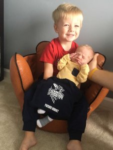 Haley Smith Nelson (AS ’13, EL ’13) and Cory Nelson (B ’12, B ’16) welcomed Parker William Nelson into the world on Sept. 28, 2018. Parker weighed eight pounds, and was 20.5 inches long. (Pictured to the left with big brother Turner.)