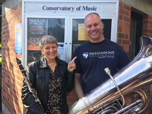 Roberta “Bobbie” Forssell Textor (C ’89) and Brian Schlegel (C ’04) recently played at a concert at the University of the Pacific in Stockton, California. (Pictured left to right.)