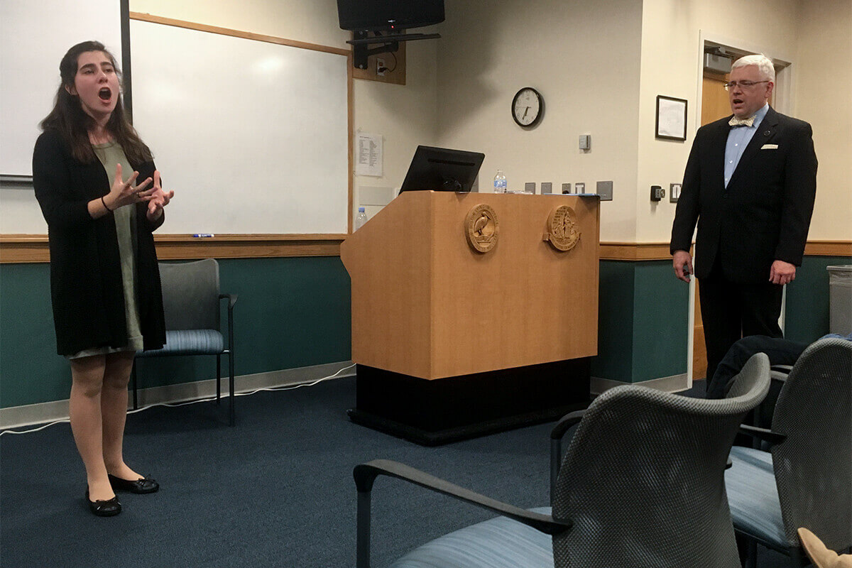 Director of the Janette Ogg Voice Research Center and Associate Professor of Voice (Baritone) and Vocal Pedagogy David Meyer, D.M., was invited to lecture and present a masterclass on “What the Singing Voice Community Needs to Know About Motor Learning” at Harvard University/Women’s and Brigham Hospital in Boston, Massachusetts, on Friday, March 1. This event was sponsored by the New England Chapter of the Voice Foundation.