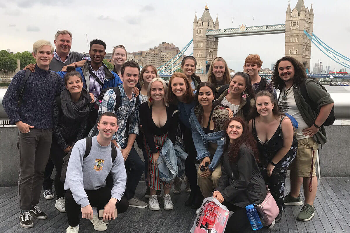 From May 25 through June 7, 16 theatre students traveled to England for the London Theatre and History GEL trip with Assistant Dean for Student Learning and Associate Professor of Theatre Carolyn Coulson, Ph.D. and Director of Acting and Associate Professor of Theatre Scott Hudson, M.F.A. The trip introduced students to the theatre and history of London and the United Kingdom. Group performance highlights featured a gender-fluid production of “Henry V” at Shakespeare’s Globe, “As You Like It” at the Royal Shakespeare Company in Stratford, “Death of a Salesman” at the Young Vic, and six new plays, some of which stretched the boundaries of traditional dramatic forms and used technology in interesting ways. The group also visited several historical sites such as Hampton Court Palace, Windsor Castle, Oxford and many of London’s great museums.