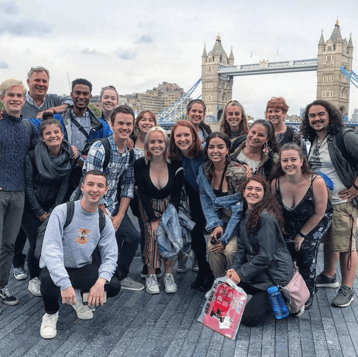 From May 25 through June 7, sixteen Shenandoah Conservatory theatre students traveled to England. The trip introduced students to the theatre and history of London and the United Kingdom. Group performance highlights featured a cross-gendered Henry V at Shakespeare’s Globe, Death of a Salesman at the Young Vic, and an immersive Midsummer Night’s Dream at the Bridge Theatre. The group also visited several historical sites such as Hampton Court Palace, Windsor Castle, Oxford, and Stratford-upon-Avon. They also took in many of London’s great museums, including the National Gallery, the Tate Modern, the Museum of London, the Wallace Collection, and a special Leonardo da Vinci exhibit at the Queen’s Gallery at Buckingham Palace. The students’ independence and flexibility served them well when one student didn’t make our initial flight out to London, and, on the way to the airport for our flight home, our chartered coach was stuck in such a traffic jam that we had to jump out, get all our luggage, and get on the Underground…in the rain.