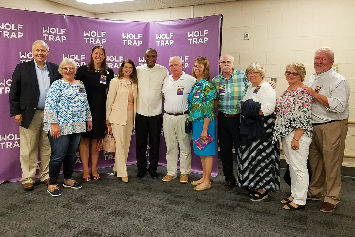 On Thursday, Sept. 5, 2019, Thomas Wilkins ’78 conducted the National Symphony Orchestra at Wolf Trap in a special performance featuring Grammy and Oscar winner Jennifer Hudson. Several members of the Shenandoah University community visited Wilkins at the performance, including Richard Helsley ’89 (Bachelor of Business Administration), Alumni Board of Directors President Susan Wyatt Helsley ’76, ’85 (Bachelor of Music in Music Education, Master of Music in Music Education), Executive Director of Alumni and Donor Relations Emily Burner ’16, D.Prof., (Doctor of Professional Studies in Organizational Leadership); President Tracy Fitzsimmons, Ph.D.; Chip Connelly ’92 (Bachelor of Science in Arts Management), Judy Barefoot Connelly ’74 (Bachelor of Music in Music Education), Leslie Hughes Robertson ’74 (Bachelor of Music in Music Education), Charlotte Hickerson McKee ’76 (Bachelor of Music in Music Education) and David McKee ’76 (Bachelor of Music in Music Education).