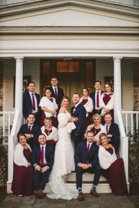 Brandon Le’von Adams (B ’15, ’17) married Chasity Toms (AS ’14) on Sept. 7, 2019, at Glencliff Manor in Rustburg, Virginia. William Harper (B ’15), Cody Bottenfield (P ’19), Kye Hopkins (AS ’15, EL ’17), DeShawna Kyle Hopkins (B ’14) and Bryce Mitchell (AS ’14, EL ’17).