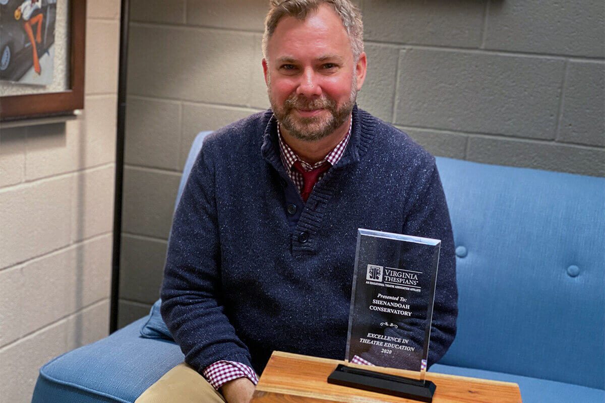 The Shenandoah Conservatory Theatre Division welcomed 700 thespian troupe members from across the state during the Virginia Thespian Festival held on the university’s main campus from Jan. 24 through Jan. 26. Director of Acting and Associate Professor of Theatre Scott Hudson, M.F.A., accepted the Excellence in Theatre Education Award for the Theatre Division given by the Virginia Thespians on Friday night before its festival production of “Rent.”