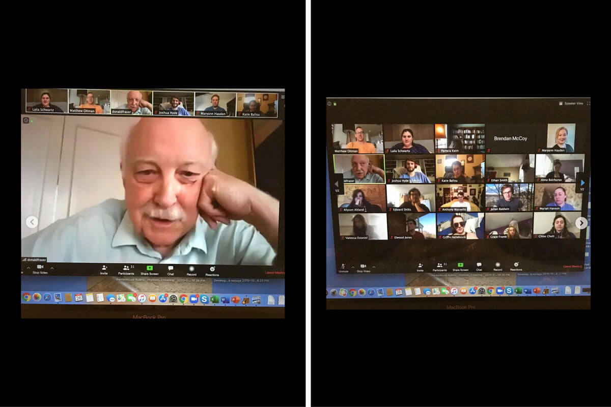 Associate Professor of Voice, Conservatory Choir Director and Choral Artist Matt Oltman, D.M.A., and the Conservatory Choir invited Donald Fraser to join their online Zoom meeting on Thursday, March 26. Fraser created the choral arrangement that was to be used for Shenandoah Conservatory’s “The Body, The Voice, The Instrument” collaborative performance at the end of March. The production would have featured the Conservatory Choir, Symphony Orchestra and Dance Ensemble.