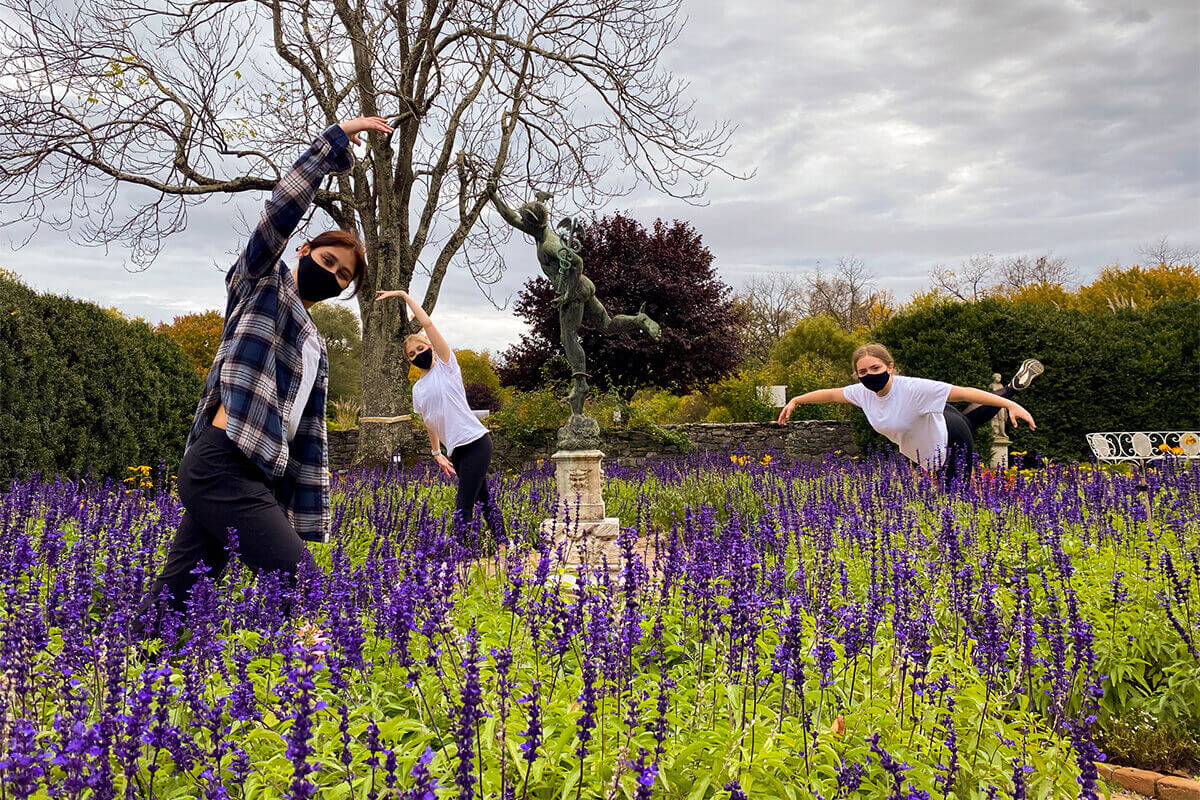 Members of Shenandoah University’s chapter of the dance fraternity Sigma Rho Delta performed in the Glen Burnie Gardens at the Museum of the Shenandoah Valley on Saturday, Oct. 24. Dancers presented works choreographed by the members and improvised throughout the gardens.