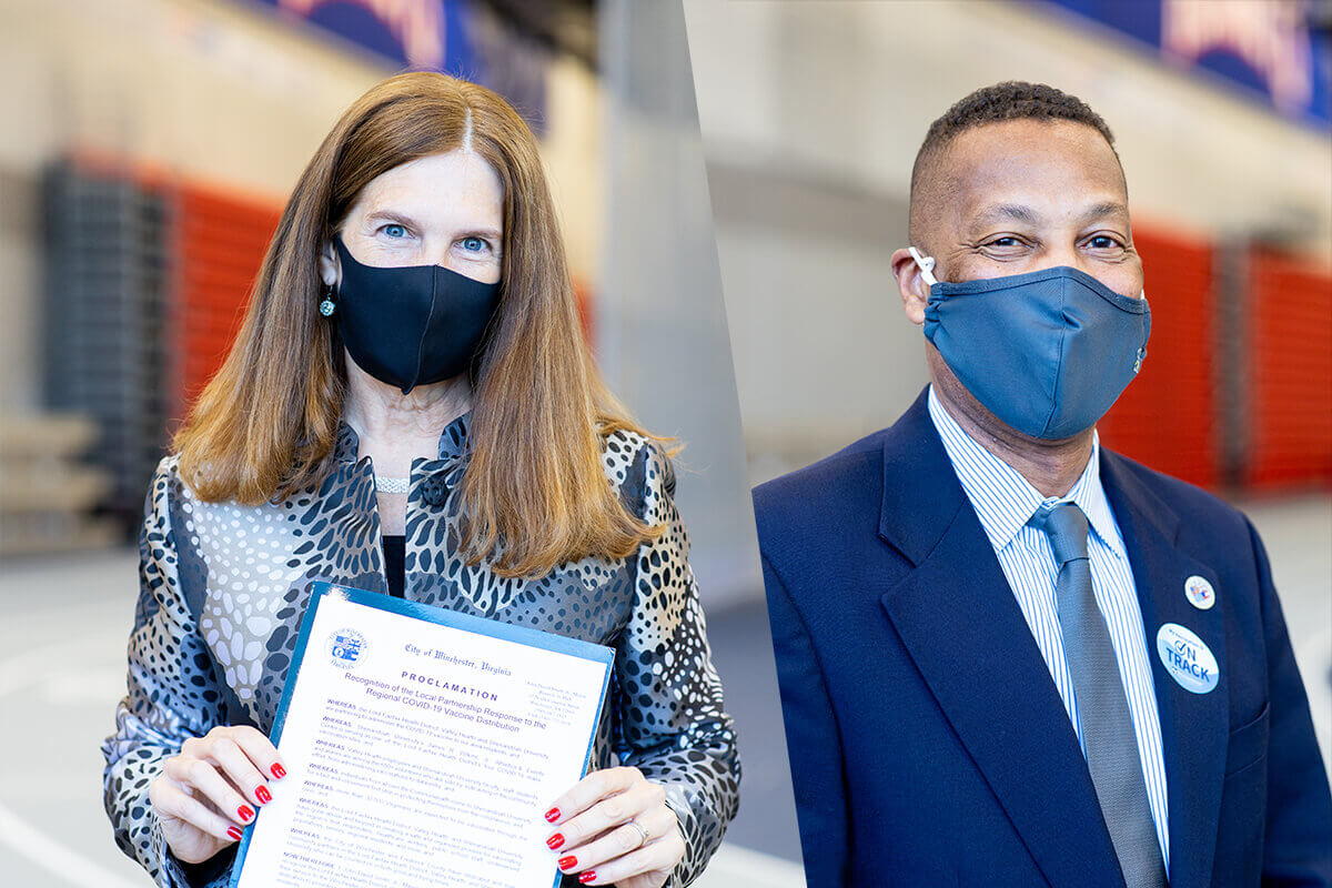 During the presentation, Smith honored the more than 650 volunteers — made up of Shenandoah University faculty, staff, students and alumni and Valley Health employees — who have helped administer the vaccine and staff the clinic.