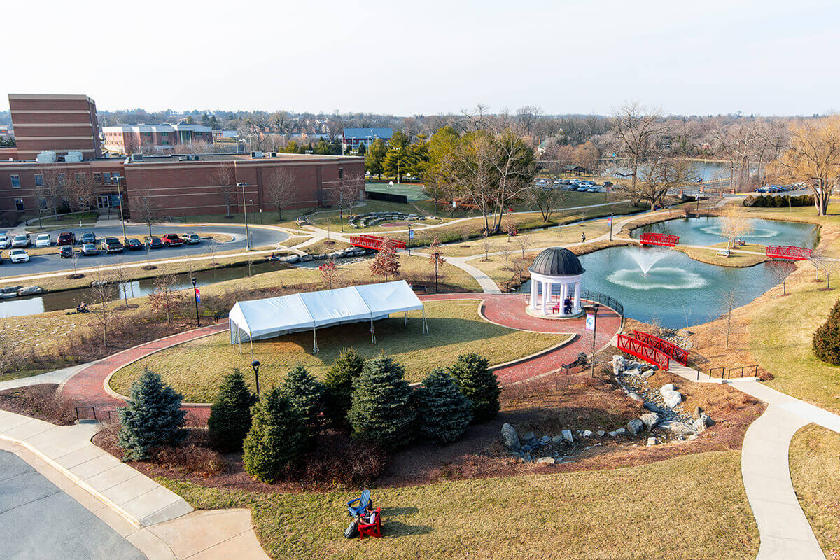- a large tent in front of Ohrstrom-Bryant Theatre