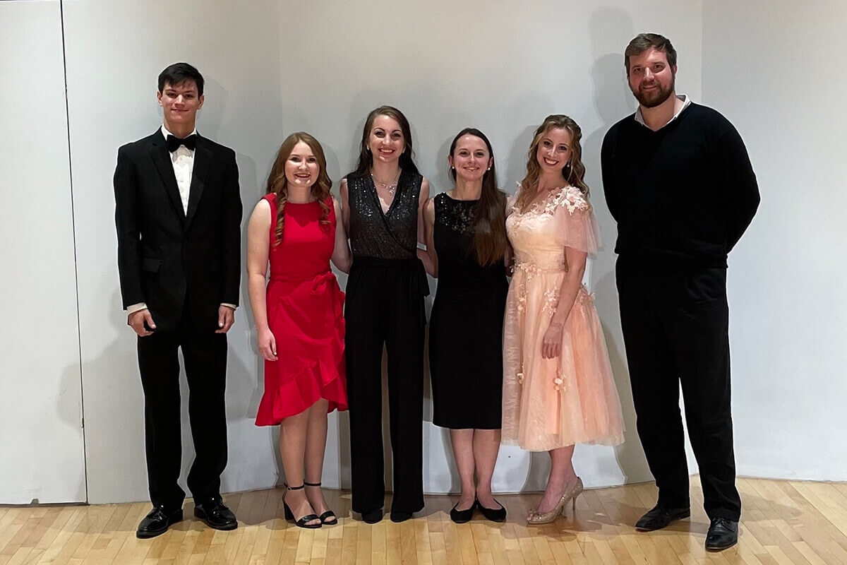 Pictured left to right: Peter Mattson(Category I Instrumental), Bailey Kinsella and Grace Frame (Category I Vocal/Choral), Sarah McMichen (Category II Instrumental), Gabriella Pisacreta (Category II Vocal/Choral) and Szymon Czerniak (Category II Keyboard).