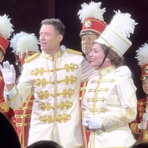 Kathy Voytko (C ’94) went on as Marian Paroo opposite Hugh Jackman in the Broadway revival of “The Music Man” on December 23, 2021. She found out at noon and practiced the role in rehearsal for the first time just a few hours before the show. At the end of the performance, Hugh Jackman made a speech about the importance of swings and understudies. (Pictured to the right.)