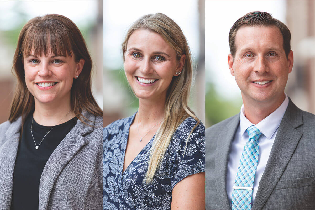 Dr. Katie Bain, DPT, (Scholar Plaza, Loudoun, faculty), Dr. Lindsay Carroll, DPT, (Health Professions Building faculty) and Dr. Joe Signorino, DPT, (Scholar Plaza, Loudoun, faculty), all of whom are assistant professors of physical therapy at Shenandoah, earned their doctorates in December. Dr. Bain (University of Kentucky) and Dr. Carroll (Duquesne University) each earned a Ph.D. Dr. Signorino earned a DSc from Bellin College. (Carroll, Bain, and Signorino are shown above.)
