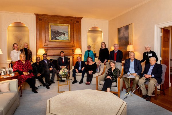 Seated, left to right: Linda R. Hall, Patrick D. McCoy, Dean Michael Stepniak, Dr. Ryuji Ueno, Doug Wheeler, Amanda Sweet, Marjorie Lewis, J. Knox Singleton,…