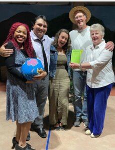 On May 28, Patricia “Trish” Epperson (C ’11) directed The Reader’s Theatre performance of “Native Gardens” by Karen Zacarias at Winchester Little Theatre. The cast also included Shenandoah community members Elijah Immanuel (AS ’24), Trevor Ontiveros (C ’18), Steve Nichols and Pam Bell (B ’83). (Pictured to the right.)