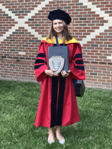 Megan Stevens ’23, OTD, OTR/L, received the alumni association’s Outstanding Graduate Award for the Post-Professional OTD program. Dr. Stevens works with geriatric individuals in senior living communities (she also makes house calls.) “Since graduating, I am now a licensed LSVT-BIG clinician, and a Certified Dementia Practitioner,” she said. “I am the lead OT at my senior living community working daily to address health and wellness in seniors and working to improve their quality of life while aging in place.”