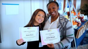Master of Science in Occupational Therapy student Joanna Rivera ’24 (on left) has received the Centennial Award from the Virginia Occupational Therapy Association (VOTA). Rivera is a student at Shenandoah’s Scholar Plaza, Loudoun, site in Leesburg, Virginia. The award is a scholarship that is given to an entry-level graduate occupational therapy student/occupational therapy assistant student enrolled at a program within Virginia, and it’s based on the student’s scholarship, leadership and qualities consistent with the promotion of the profession for the next century of practice.