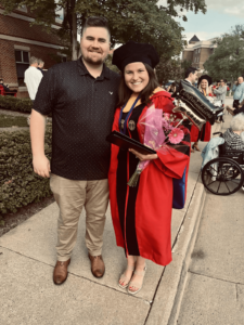Megan Stevens ’23, OTD, OTR/L, received the alumni association’s Outstanding Graduate Award for the Post-Professional OTD program. Dr. Stevens works with geriatric individuals in senior living communities (she also makes house calls.) “Since graduating, I am now a licensed LSVT-BIG clinician, and a Certified Dementia Practitioner,” she said. “I am the lead OT at my senior living community working daily to address health and wellness in seniors and working to improve their quality of life while aging in place.”