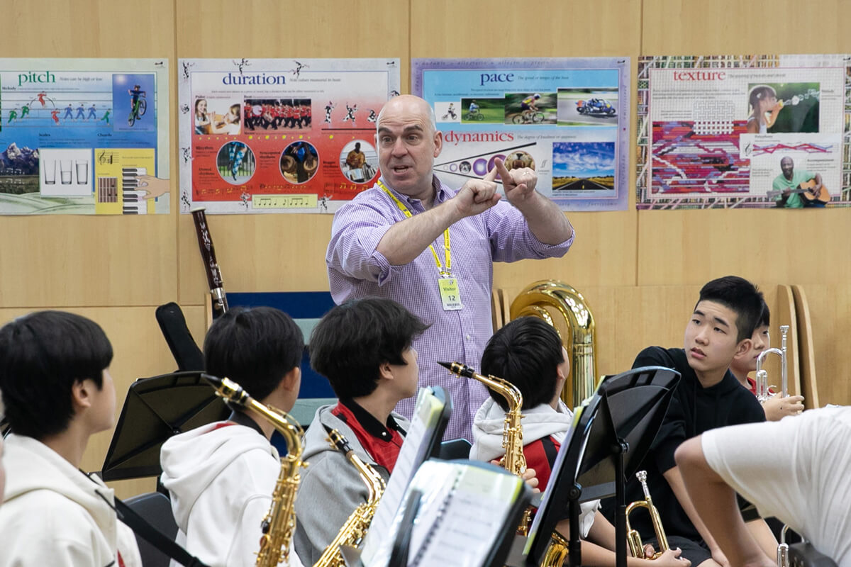 Director of Bands and Associate Professor of Conducting Tim Robblee, Ph.D., conducted the National Honor Festival Band for the Korean International Music Education Association (KIMEA) in Seoul, South Korea, this month. KIMEA gathers annually in Seoul for its National Honor Festival (NHF), which includes band, string, and choral students from international schools throughout Korea. Robblee is the first conductor to have conducted the honor band twice, having first served as the NHF guest conductor in 2014. Prior to the weekend festival, Robblee served as a clinician for three high school programs around the greater Seoul area.