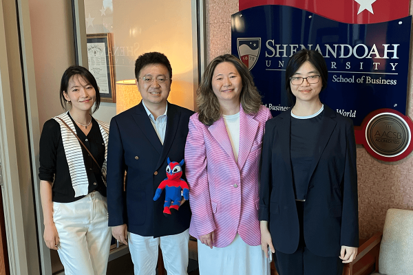 Global MBA students Qu (Malina) Jinling (MBA ’24), Hou (Eller) Juxia (MBA ’24) and Bai Yu (MBA ’24) visited their American alma mater, Shenandoah University,…