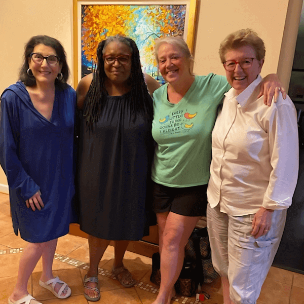 This past summer, Anita Hahn Thornton (C ’78), Jerilyn Payne (C ’77), Leslie Hall Faiers (B ’77) and Kathy Zimmerman (HP ’77, AS ’78), Sigma Theta Chi Sisters, gathered for some fun, food and a trip down memory lane. (image to the right)