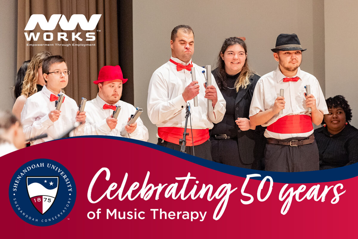 NW Works Chimers is a campus and community partnership between NW Works and the Shenandoah University Music Therapy program. NW Works is a 501(c)(3) non-profit striving to bridge the employment gap for people with disabilities and others facing barriers to meaningful employment.
