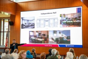 Production of “The Great Experiment” began in 2019 and involved nearly 100 Shenandoah students, faculty and staff, historians, computer scientists, virtual reality and audio engineers, and media directors and producers, with additional support from historians at James Madison University, exhibition developers at the National Constitution Center, curators at the National Park Service’s Independence National Historical Park, and the University of Virginia Press.