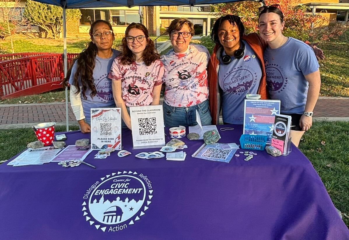 SU’s Center for Civic Engagement fueled the university’s efforts to increase student voter participation in the 2024 election. The CCE encouraged students to register to vote during special on-campus events, hosted a series of election-related dialogues to provide students with opportunities to engage in conversations about election-related issues, held an Election Day celebration on Shenandoah’s main campus, and drove students to local polling places on Election Day and during the early voting period so that they could cast their votes.
