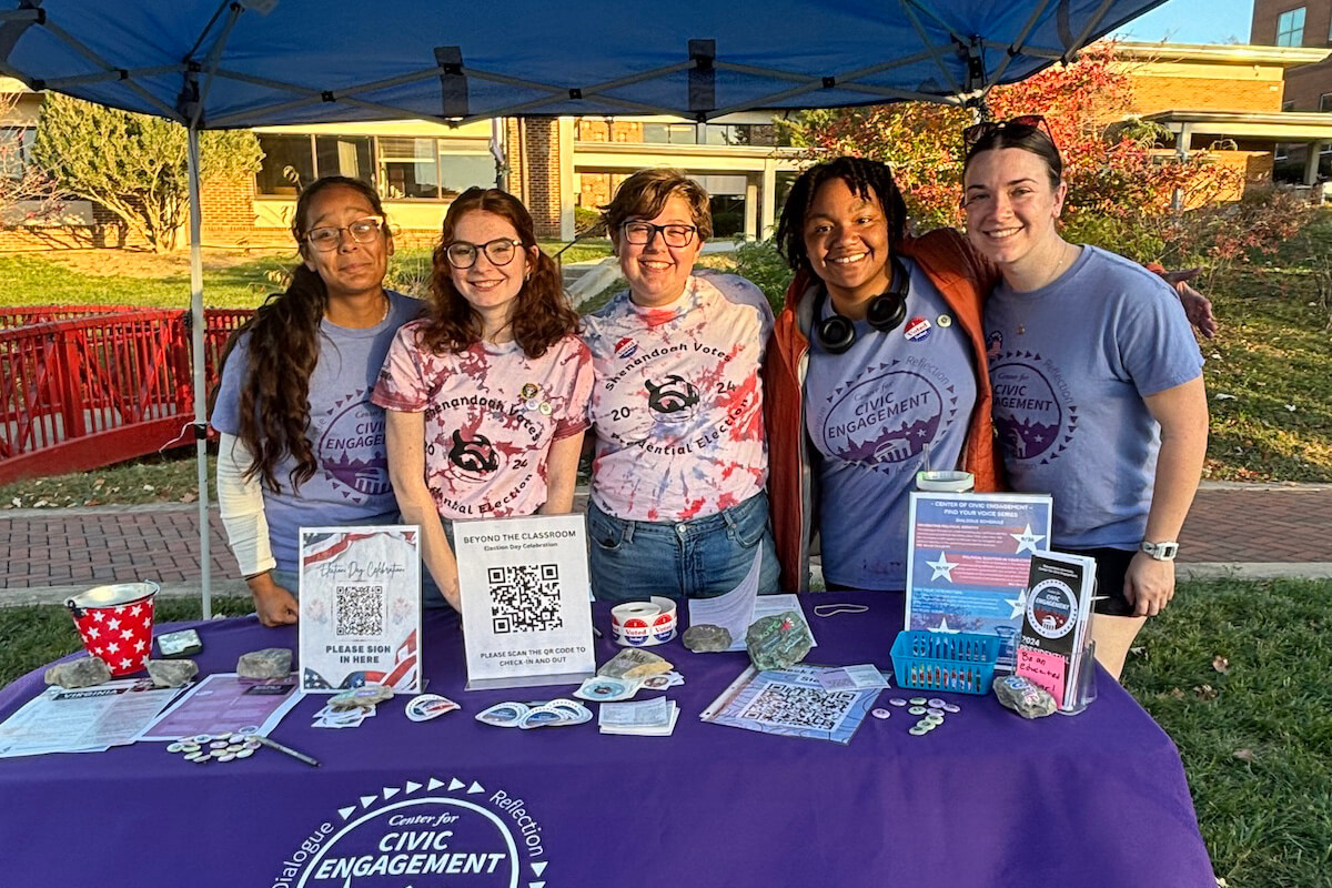 In the years leading up to the 2024 elections, Shenandoah University, led by its Center for Civic Engagement, worked to increase student voter engagement through a series of events and on-campus opportunities that promoted education around, and participation in, the U.S. democratic system. These included voter information and registration tables for students; voter registration presentations during undergraduate and graduate classes, athletic team meetings, and other student programs; a deliberative dialogue series that explored various topics related to the 2024 presidential election; free rides to and from a local polling place in Winchester, Virginia, on Election Day and during the early voting period; and an Election Day celebration.