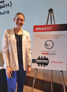 Shenandoah University third-year Pharm.D. student Sheridan Herron ’26 won the American Pharmacists Association-Academy of Student Pharmacists (APhA-ASP) National Patient Counseling Competition during the APhA Annual Meeting that took place March 21-24, in Nashville, Tennessee.