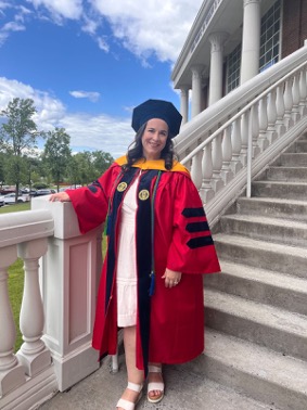 Sarah Morrison ’25, OTD, received the OTD Dean’s Award, for embodying the ideals of the profession by demonstrating academic excellence, professionalism, and potential for future contributions to the profession. Dr. Morrison, who is now employed as a pediatric occupational therapist in Fairfax, Virginia, said she enjoyed working with a variety of populations and within a number of different settings, including inpatient, early intervention, and acute care while at Shenandoah. “I completed my capstone experience with Continuum Care Strategies providing education to caregivers to those with dementia to improve their occupational well-being and satisfaction with caregiving,” Morrison said. “I was able to present this research at the Shenandoah University Research Expo to a wide audience of people to disseminate my findings and continue to advocate for my profession in various areas of practice. I hope to take what I have learned through this program and continue to make a difference in the lives of those I work with in the future.”