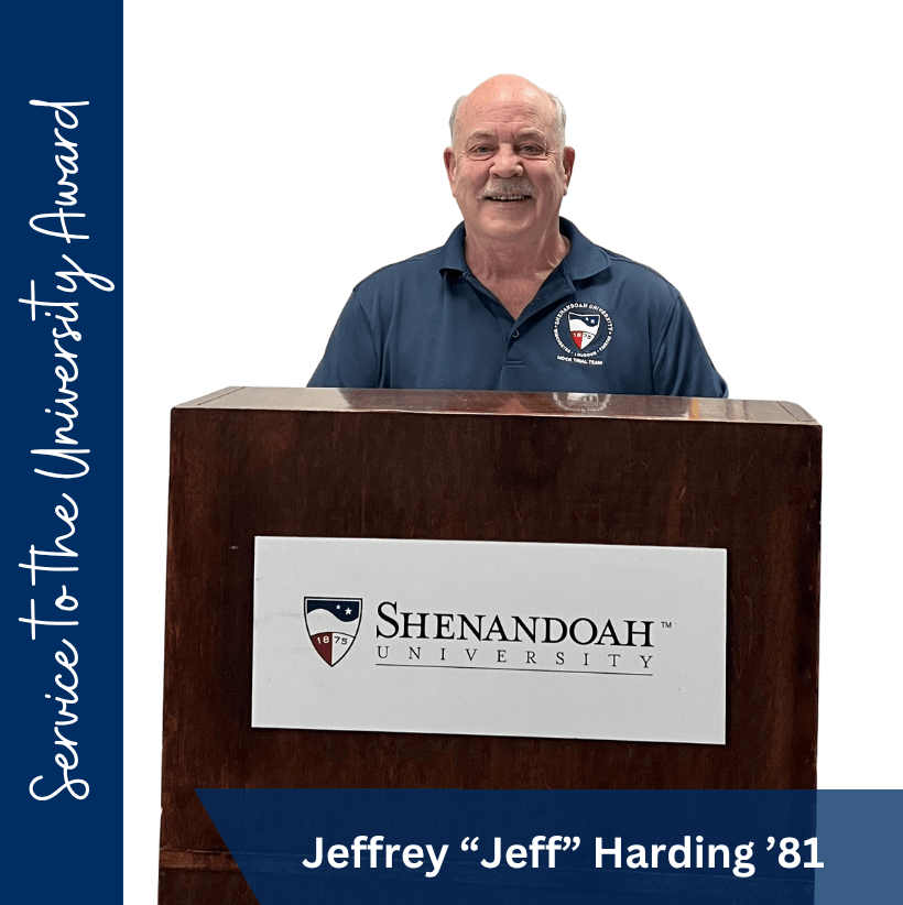 Jeffrey “Jeff” Harding ’81 earned a Bachelor of Arts in history from Shenandoah College & Conservatory. He also earned a Juris Doctorate from California Western School of Law.