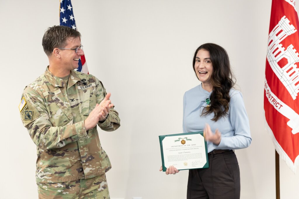 More than a year after Hurricane Helene devastated western North Carolina, Mary Ensogna ’09 (pictured on the far right above) has been honored with the Civilian Service Commendation Medal for her critical role in U.S. Army Corps of Engineers (USACE) recovery operations.