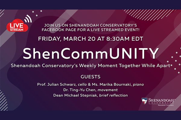Our First ShenCommUNITY Program was held Friday, March 20! ShenCommUNITY is a weekly virtual gathering for the Shenandoah Conservatory community. The live stream event features…