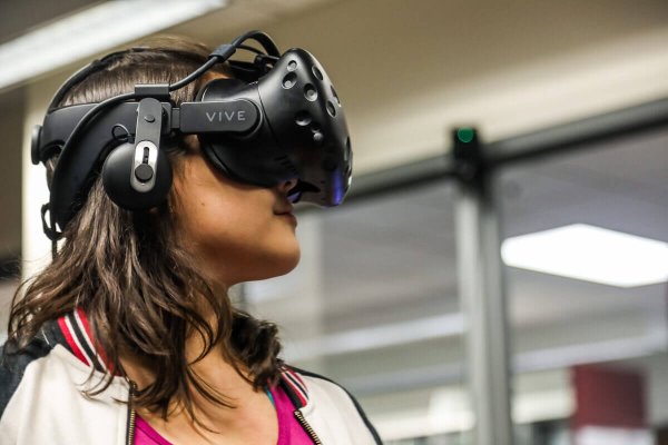 In a technology lab at Shenandoah University in Virginia, students battle monsters, partake in lunar landings, experience a Civil Rights-era sit-in, and play soccer in rocket-powered cars.…