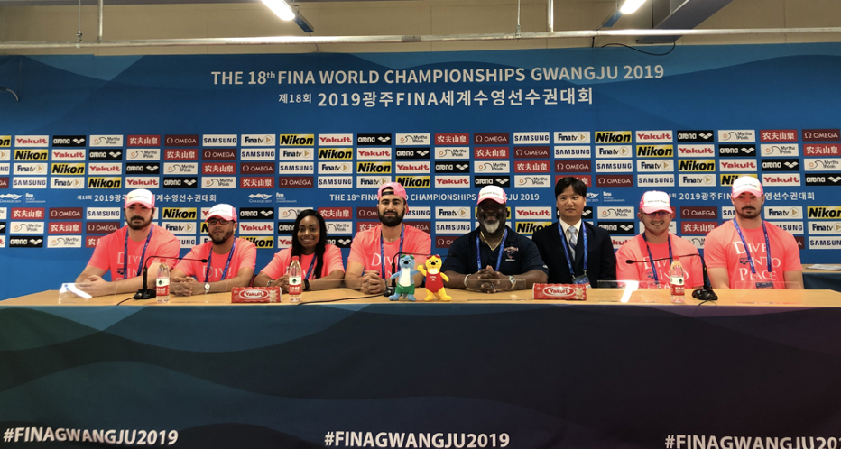 Six students volunteered at the 18th FINA World Swimming Championships in Gwangju, South Korea in 2019. The student team escorted athletes to the drug testing center directly after their competition.