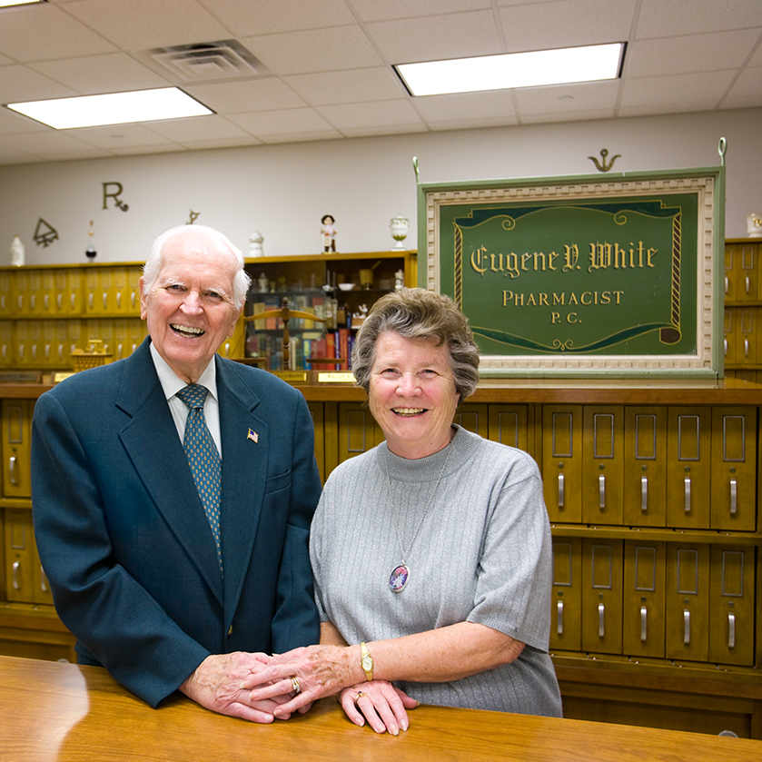 The Eugene V. White Pharmacy Museum reflects the field of pharmacy around the 1960s. By the 1960s, commercial pharmaceutical companies were compounding all prescriptions, so pharmacists had transitioned into an almost strictly sales positions. Eugene V. White proposed at the time the radical idea that pharmacists were better suited than physicians to answer patient’s questions about how prescriptions performed in the body. Through his campaigning White single-handedly changed the direction of pharmacy. The artifacts of his pharmacy are now housed in the Health Professions Building as a historical exhibit to show pharmacy students how quickly the field changes.