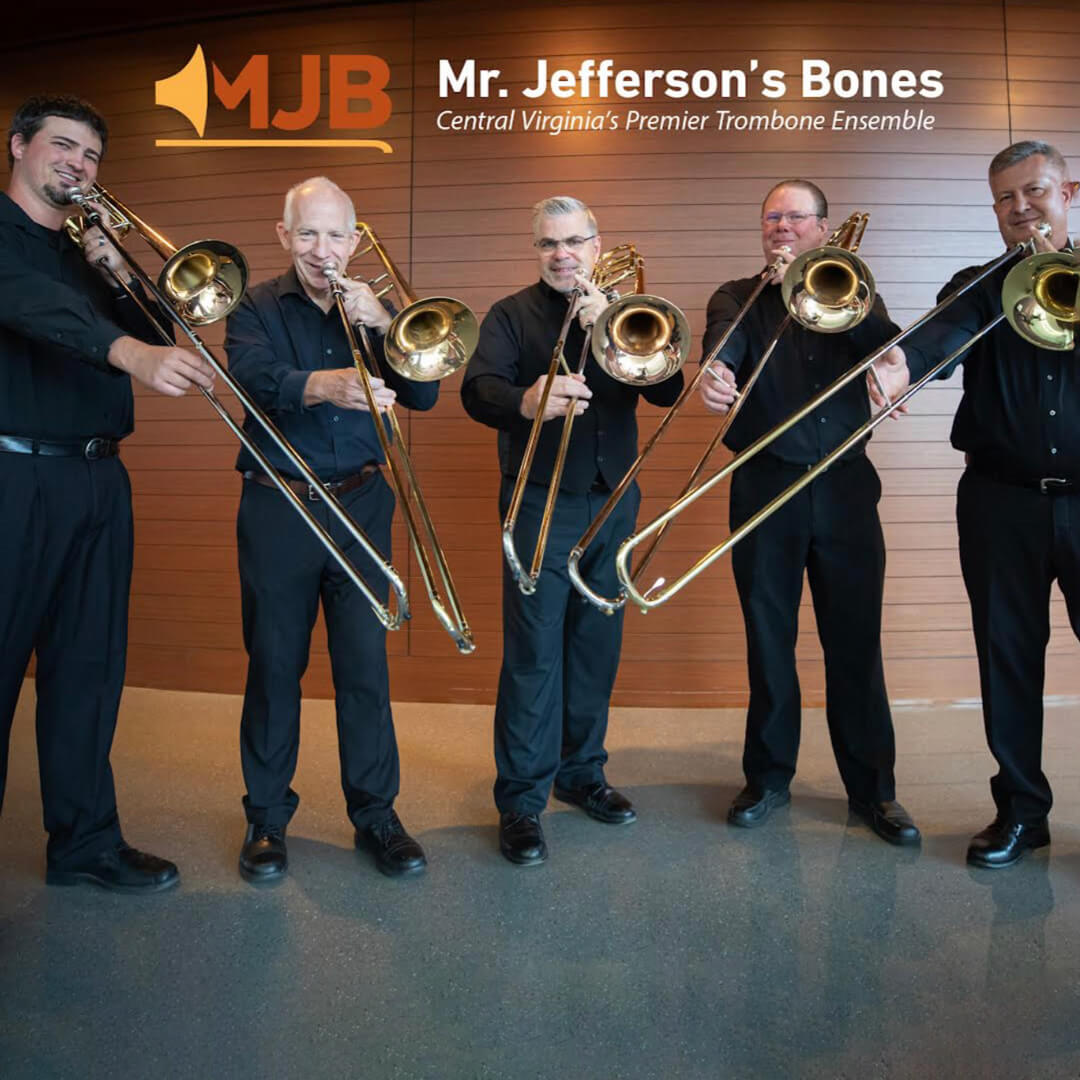 Mr. Jefferson’s Bones is comprised of some of the Shenandoah Valley’s most experienced and talented professional trombonists and enjoys performing a wide variety of classical, sacred, popular and jazz repertoire. The group’s members include Andy Lankford, Tom McKenzie, Robert Mott, Jay Crone and Kyle Remnant. “MJB” is most proud of its annual trombone festival — Tromblow’in — typically held each January at James Madison University, which gives trombonists of all ages and abilities a day of workshops, concerts and clinics with professionals from around the state and country.