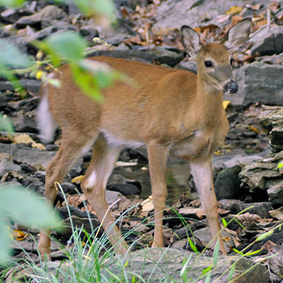 In the mammalian world, white-tailed deer are plentiful, especially at dawn and dusk. Beavers, raccoons and muskrats also have been spotted at the site, and glimpses of red foxes are also possible. Bat boxes on the property provide homes for the only mammals that can truly fly. Virginia’s bats are nocturnal, which means they sleep during the day and are active at night. A single bat can consume up to 3,000 insects a night, making them wonderful wild neighbors.