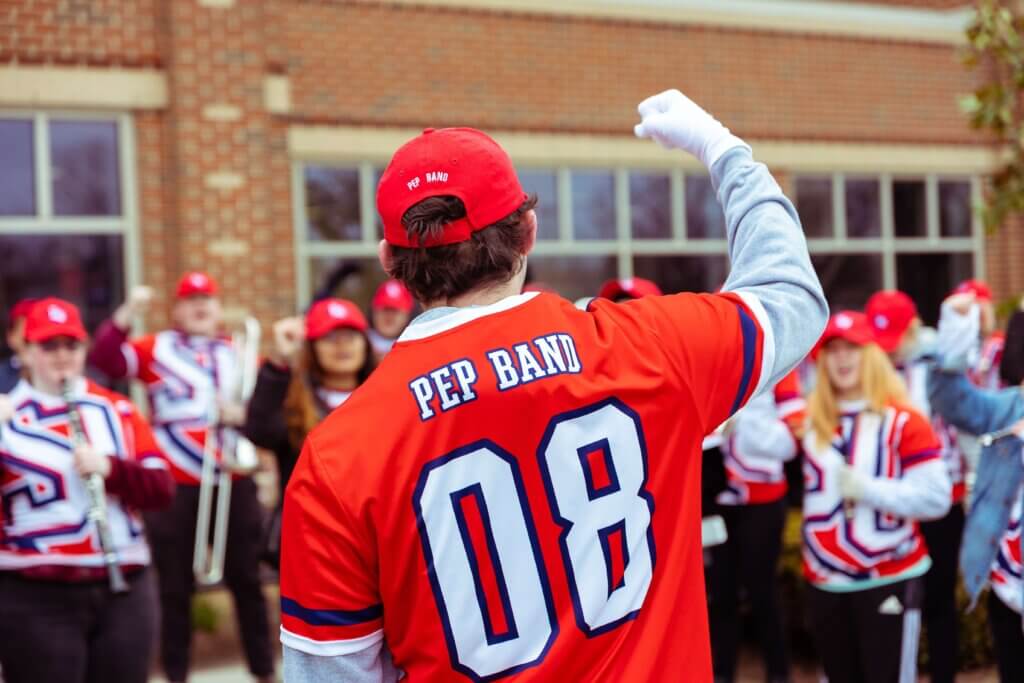 The original Shenandoah University Buzzin’ Dozen Pep Band was formed in 2008 under the leadership of student director, Eric Price. The program grew rapidly through 2008-09, and this growth continued through the end of the 2021-2022 school year. From 2008-2022 the pep band was led by eight different student directors and maintained an average of 40 active participants each year. At the end of the 21-22 school year, it was announced that the Pep Band would evolve from a student-run organization to a group that is housed under the official Shenandoah University Marching Band.