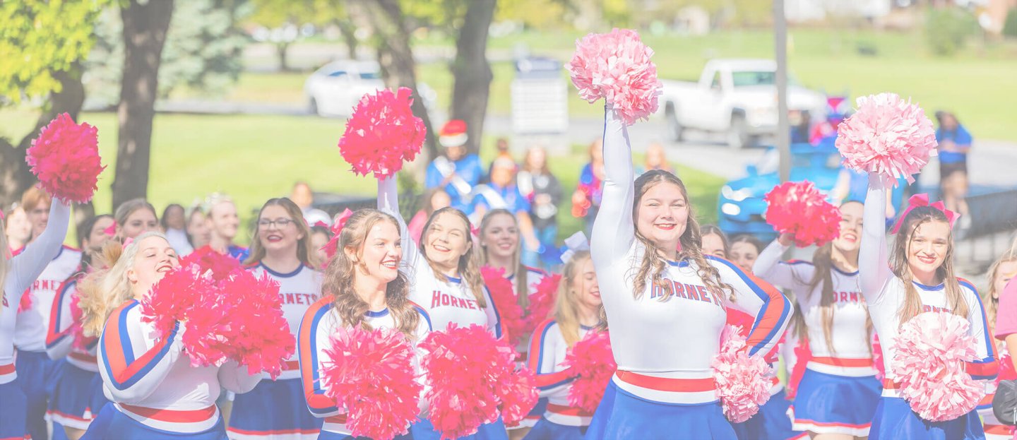 Check out our cheerleaders, who you’ll see at athletics games and in competitive cheer! Tryouts are held every year.