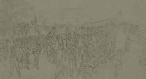 Surrender of the Army of Northern Virginia to the Army of the Potomac sketched by John R. Chapin. (Library of Congress)