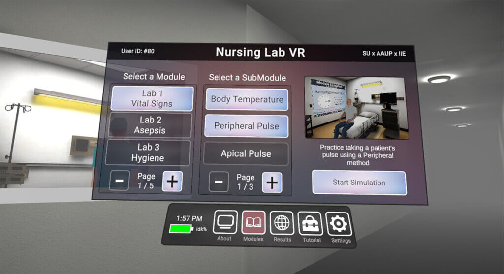 In this project, students from Shenandoah University’s VR Design program worked on developing a VR nursing platform with various learning modules for the fundamentals of nursing curriculum.